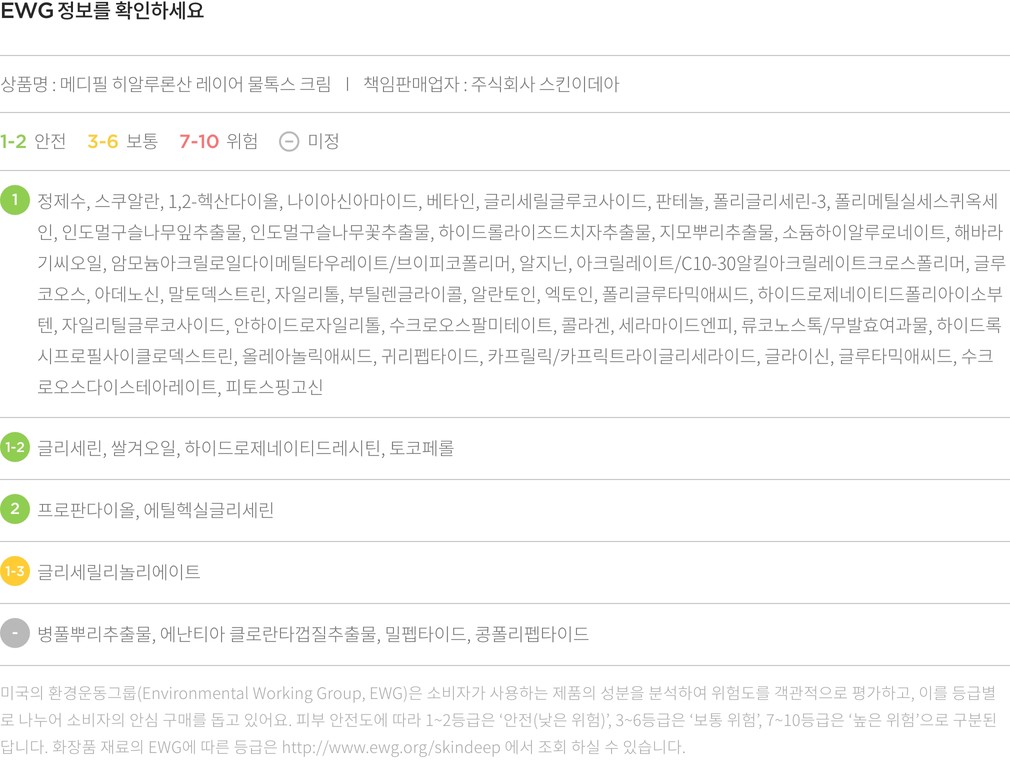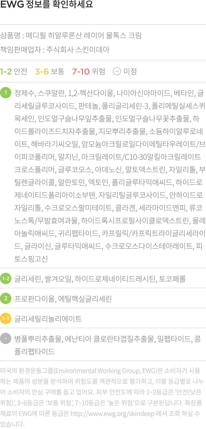 ・ 특징:수분 보호막을 형성해 오래도록 촉촉한 피부를 유지해줘요. 미백과 주름 개선에 도움을 주는 기능성 제품입니다.