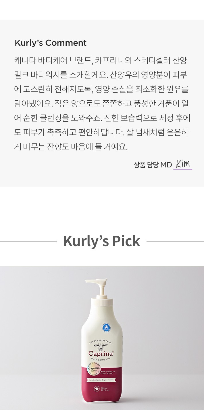 ・ 특징:산양유를 48,920ppm 함유하고 있는 바디워시입니다. 산뜻한 클렌징과 촉촉한 보습을 동시에 선사해요.