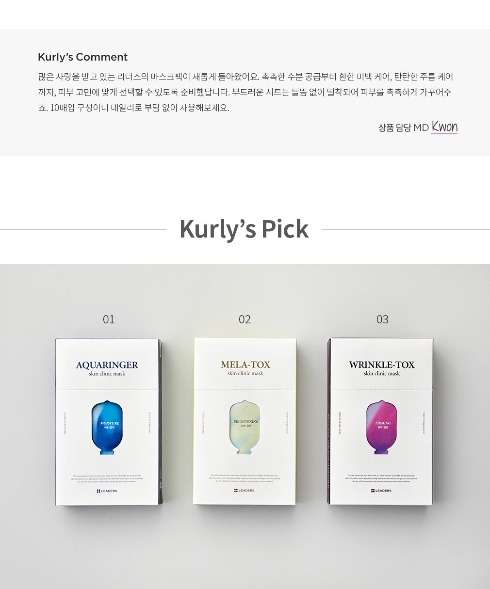 01. 아쿠아링거 스킨 클리닉 마스크・ 개수:1박스(25mL X 10매입)