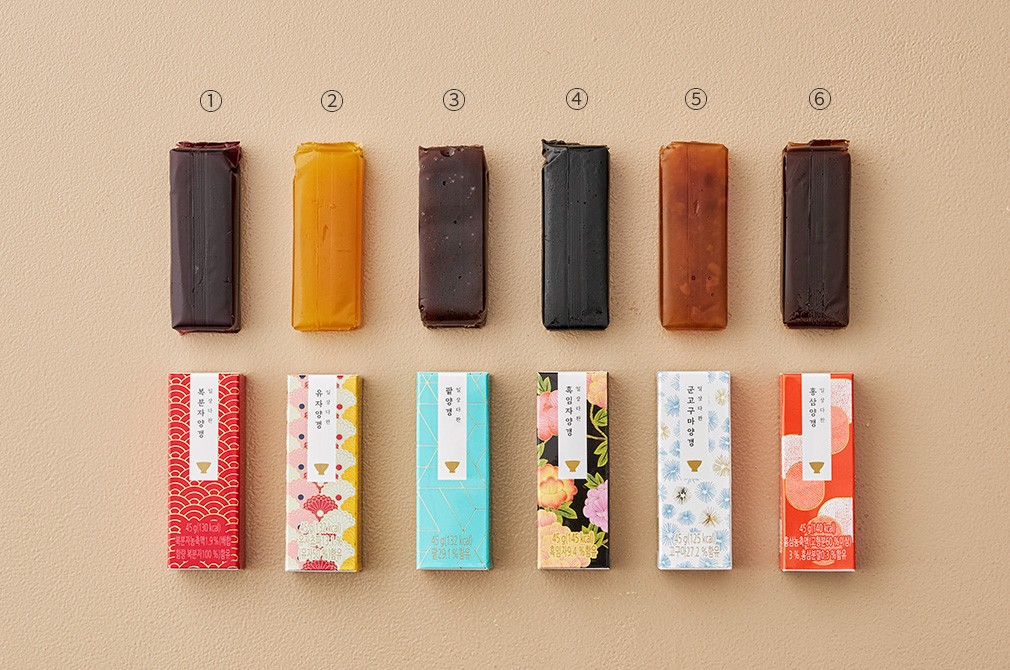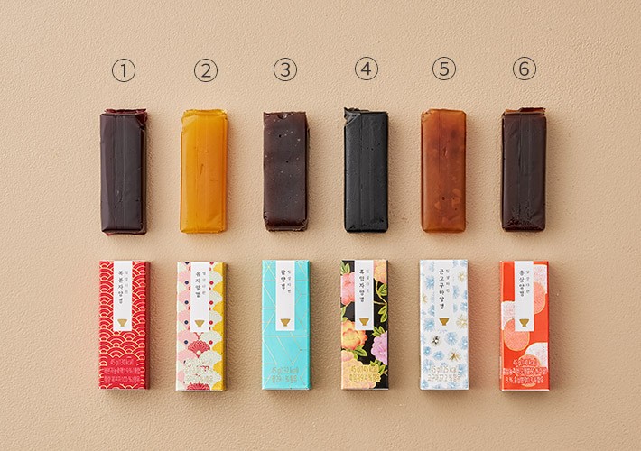 양갱 세트?구성:①복분자양갱,②유자양갱,③팥양갱,④흑임자양갱,⑤군고구마양갱,⑥홍삼양갱