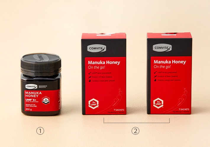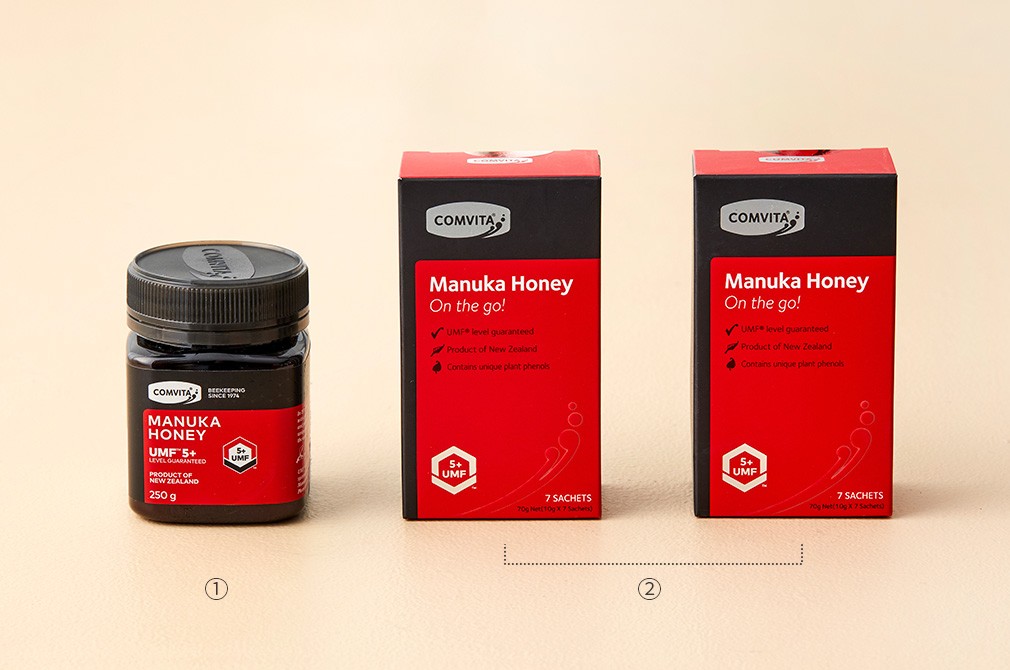 UMF5+ 마누카꿀 &UMF5+ 사셰 허니스틱 세트・ 구성:①UMF5+ 마누카꿀,②UMF5+ 마누카꿀 사셰 허니스틱