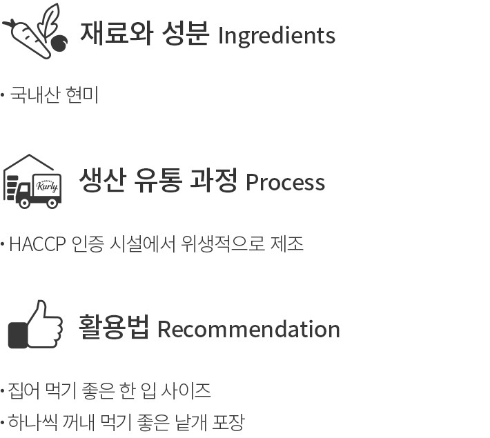 정성을 담은 먹거리를 선보이는 더오담의 현미 팝스틱을 소개할게요. 국내산 현미로 만든 튀밥에 조청을 얇게 입혀 자연스러운 단맛을 냈어요. 바삭바삭한 식감은 물론 씹을수록 고소한 맛에 자꾸만 손이 가죠. 하나씩 깔끔하게 포장했으니,입이 심심할 때 하나씩 꺼내 즐겨보세요. 자극적이지 않은 맛이라 아이들 간식으로도 참 좋을 거예요.