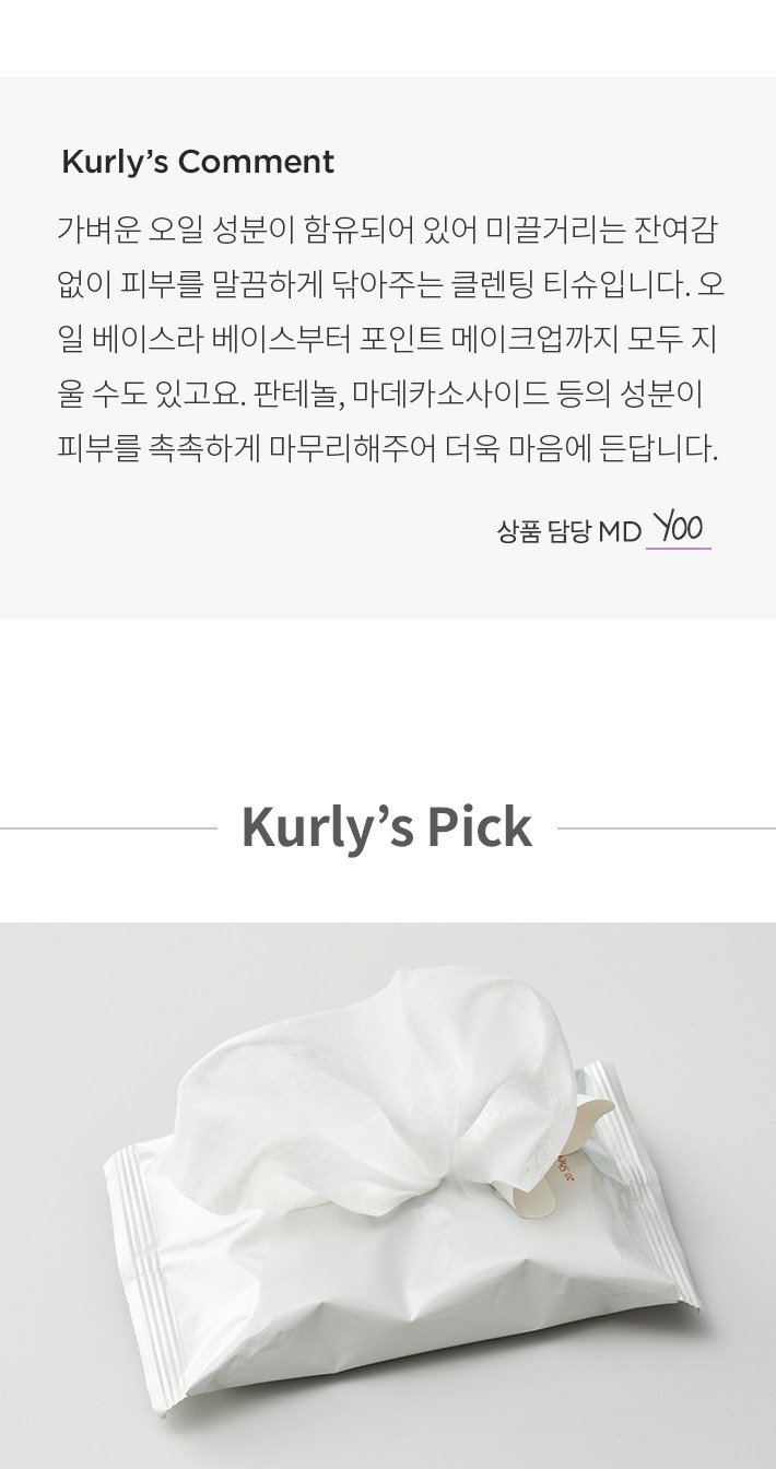 ・ 특징:메이크업과 피부 노폐물을 부드럽게 제거해줍니다. 판테놀,마데카소사이드 등의 성분이 함유되어 있어,닦아낸 후에도 촉촉하게 마무리해줘요.