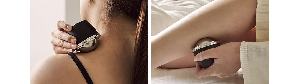 3. 뭉친 근육이나 배에 가볍게 굴리며 따뜻한 온열감을 전해주세요.