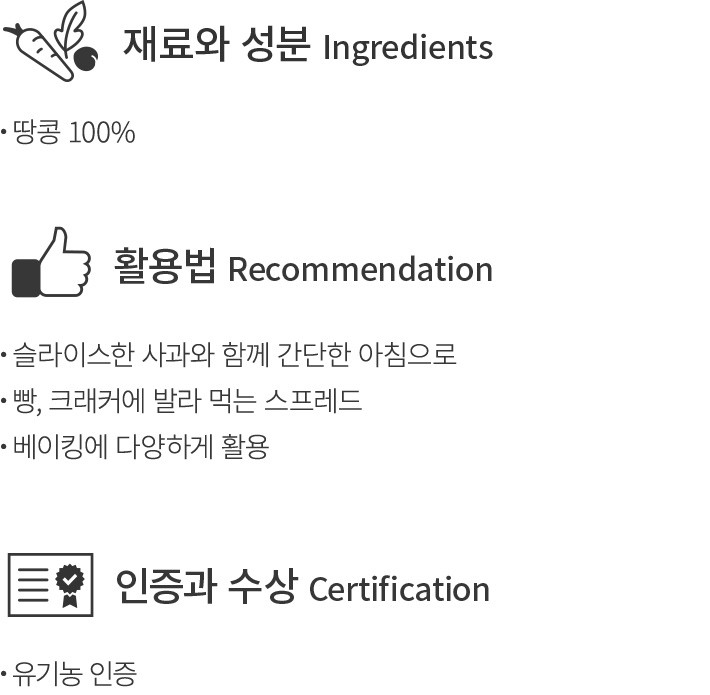| 알레르기정보 | - 땅콩 함유 - 견과류(대두,호두,잣) 혼입 가능 |