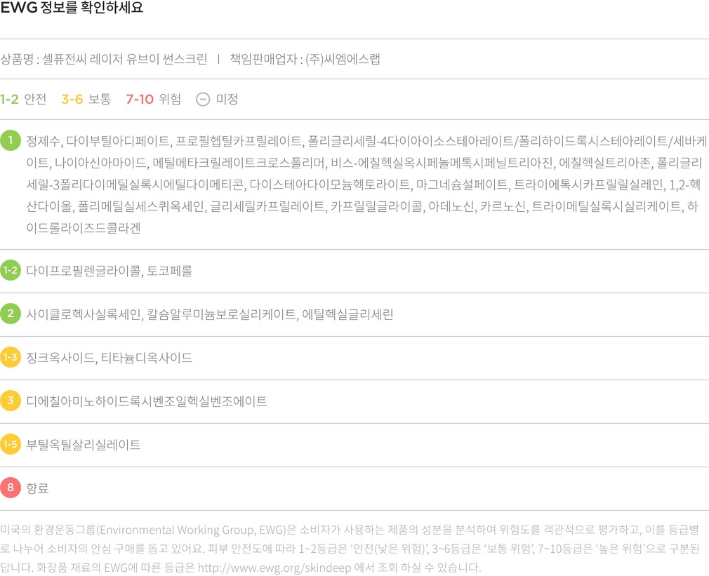 ・ 장시간 야외활동 시 수시로 선크림을 덧발라 주세요.