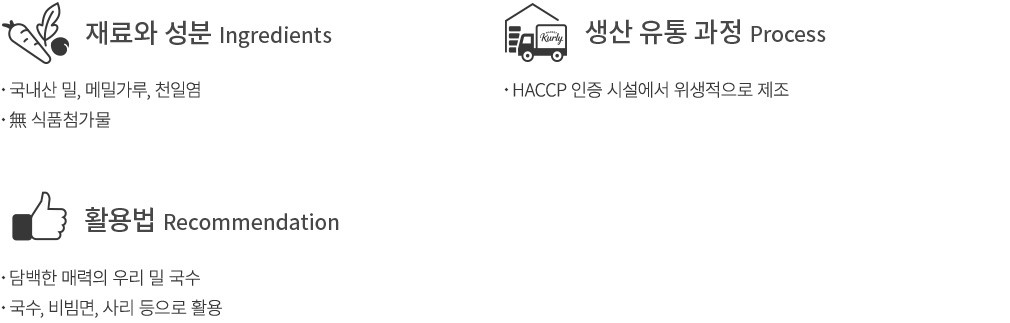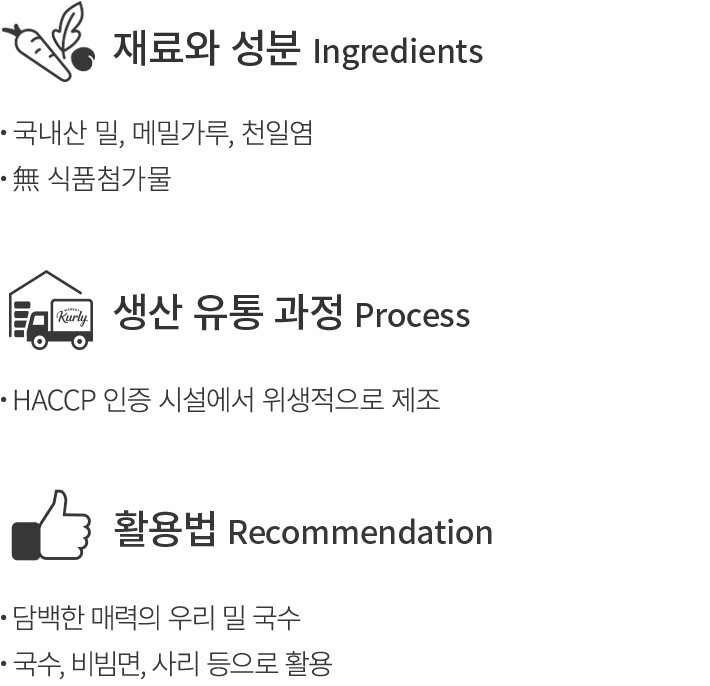 온 가족이 안심하고 먹을 수 있는 국수,우리농으로 만나보세요. 50여 년간 쌓아 온 국수 제조 노하우로 정성껏 만든 국수를 선보여요. 이번에는 우리농의 메밀 국수를 소개할게요. 다른 첨가물 없이 오직 밀가루와 메밀가루,천일염으로 만들어 더욱 믿음직스럽죠. 메밀 본연의 슴슴하면서도 담백한 맛은 물론이고요. 밀과 알맞게 배합해 적당한 찰기가 느껴진답니다. 국수나 사리 등으로 다양하게 활용해 보세요.