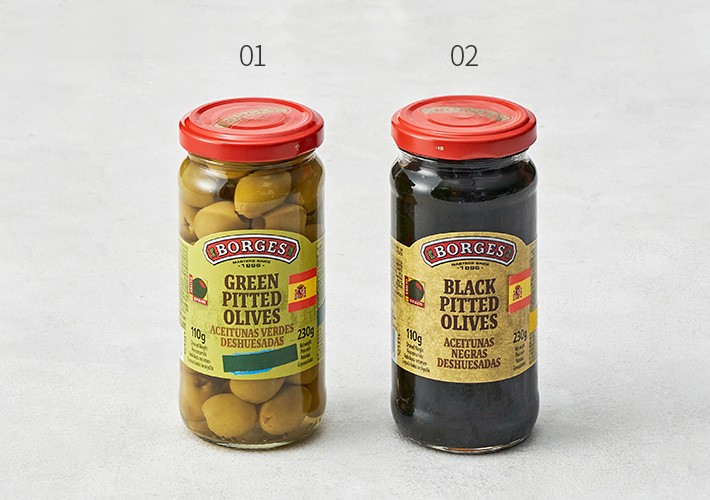 1896년에 설립된 스페인의 올리브 오일 브랜드,보르게스가 선보이는 피티드 올리브를 소개할게요. 올리브의 씨를 제거한 다음 깔끔하게 절여 한 병에 담아냈답니다. 그대로 드시는 것은 물론,용도에 맞게 슬라이스해 사용하기에도 제격이지요. 쫄깃하고 고소한 블랙올리브와 풋풋한 풍미의 그린올리브 2가지 종류를 준비했으니 취향에 따라 골라보세요. 피자,샐러드,파스타 등 다양한 요리에 활용하기 좋을 거예요.