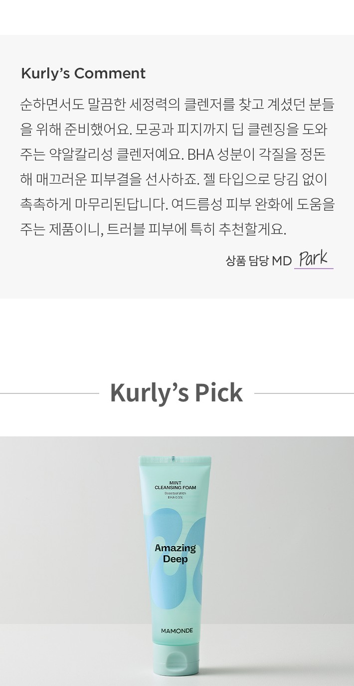 ・ 특징:순하면서도 말끔한 세정력을 갖춘 약알칼리성 클렌저입니다. 여드름성 피부 완화에 도움을 주는 기능성 제품이에요.