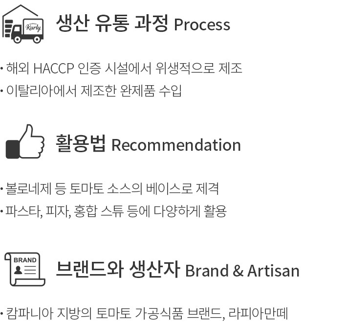 ・특징:바질을 넣어 향긋한 매력을 더한 토마토 퓨레입니다.