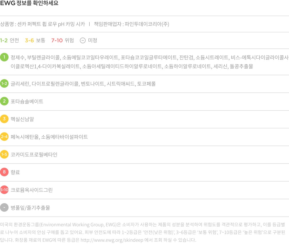 ・ 특징:모공 속 노폐물을 말끔하게 씻어내고,피부 진정을 도와줍니다. 민감 피부에도 순하게 와닿아요.