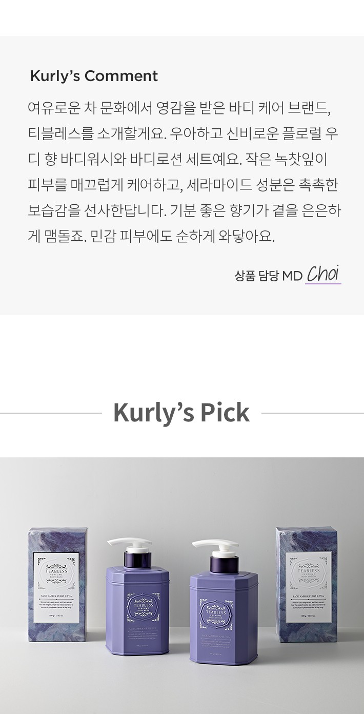 ・ 특징:우아하고 신비로운 분위기의 플로럴 우디 향 바디워시입니다. 녹찻잎이 피부 각질을 부드럽게 정돈해줘요.
