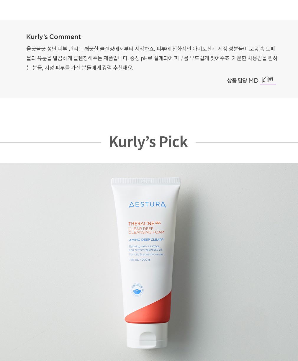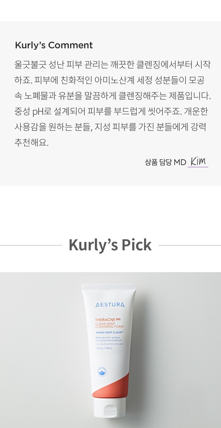 추천 루틴 1. 테라크네 365 클리어 딥 클렌징 폼으로 번들거리는 피부를 말끔하게 클렌징해주세요.