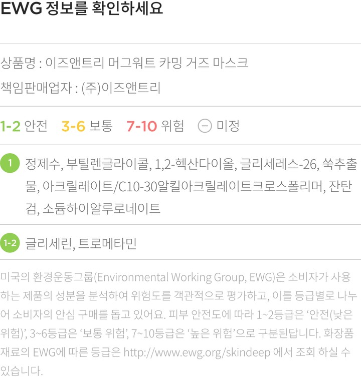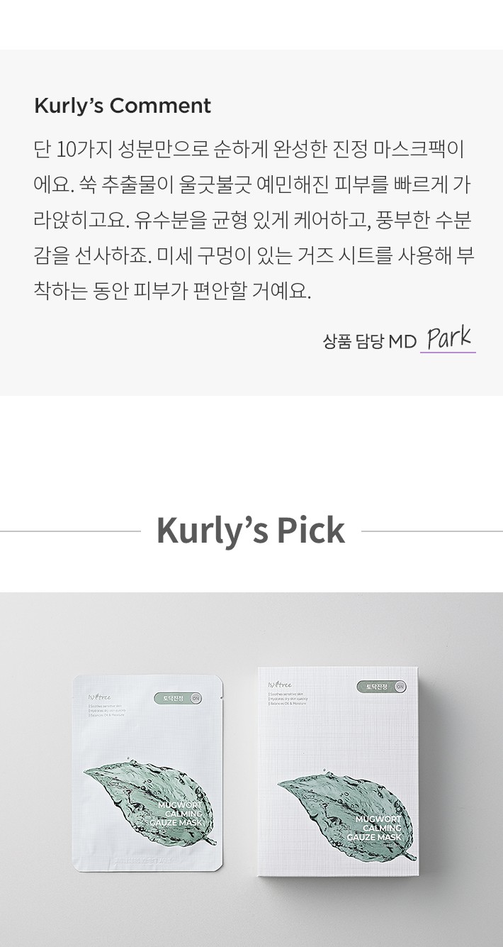 ・ 특징:피부 진정과 유수분 균형 조절,수분 충전을 돕는 마스크팩이에요.