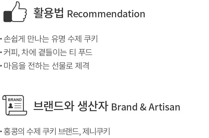 2005년,홍콩에서 문을 연 제니쿠키는 진한 버터 풍미와 부드러운 식감으로 많은 사랑을 받아온 수제 쿠키 브랜드,제니쿠키의 2믹스 쿠키를 소개할게요. 사르르 녹는 식감이 매력적인 버터 플라워 쿠키와 커피 쿠키를 함께 담았답니다. 섬세한 일러스트가 그려진 틴 케이스 역시 제니쿠키만의 매력인데요. 주기적으로 일러스트가 변경되니 소장 가치까지 있답니다.