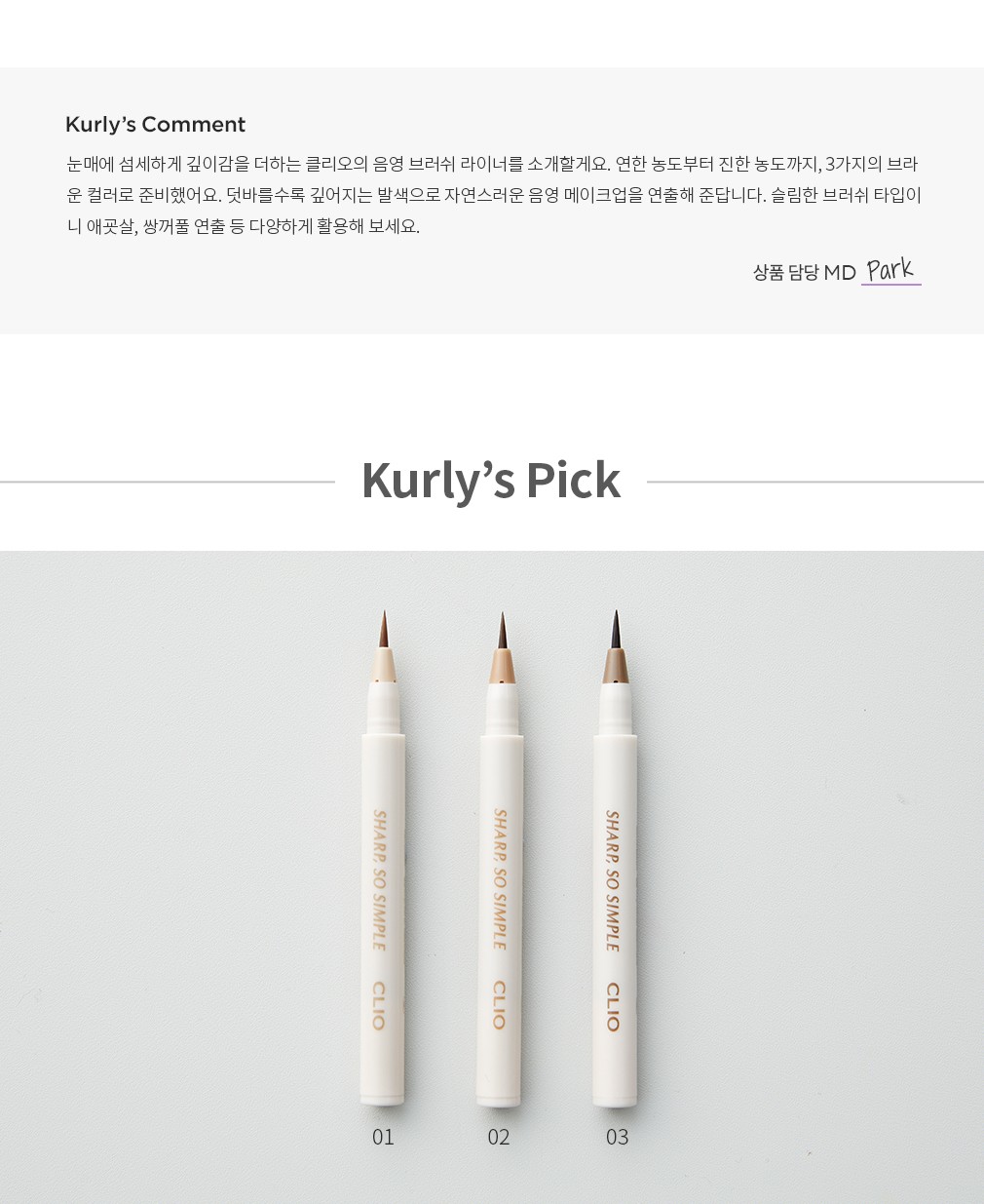 ・ 특징:진한 농도의 브라운 컬러예요. 아이라인뿐만 아니라 매력점 등을 연출하기 좋아요.
