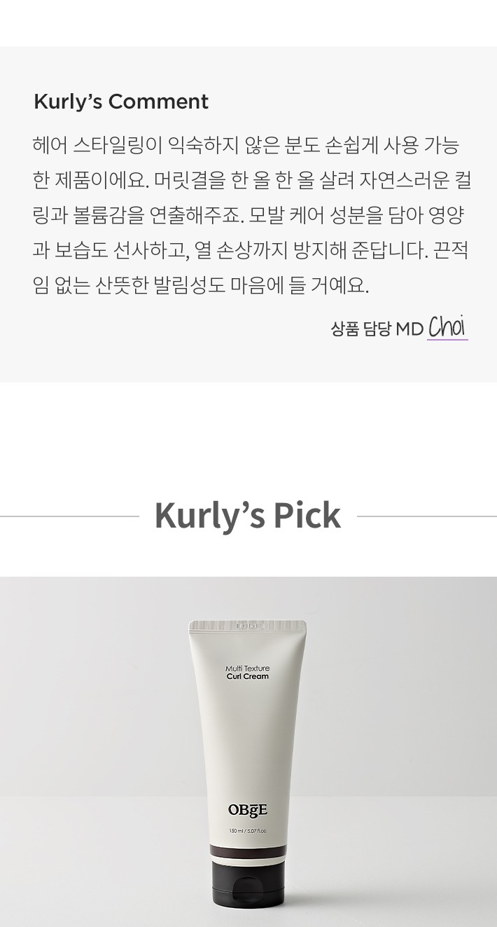 Tip. 컬크림 사용 전 헤어드라이기,고데기 등의 열처리 기구로 스타일링의 틀을 잡아주세요.
