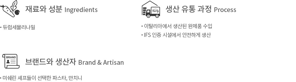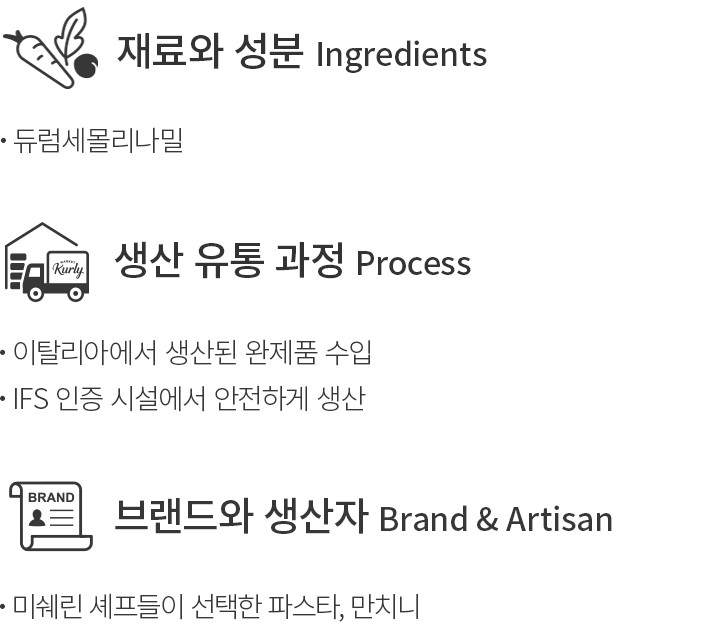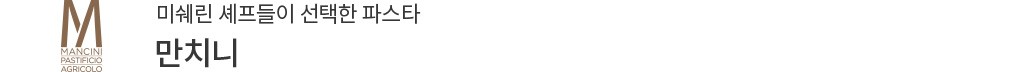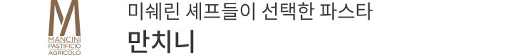 이탈리아의 전통을 자랑하는 파스타 브랜드,만치니를 소개할게요. 밀 농장에서 시작된 이곳은 농경학과 파스타에 대한 깊은 지식을 바탕으로 3대째 그 명성을 이어오고 있어요. 만치니는 밀 종자 선택부터 파스타 생산까지 전 과정을 직접 관리하며 높은 수준의 품질을 유지하고 있는데요. 그 덕분에 미쉐린 레스토랑의 셰프들이 선택하는 파스타 브랜드가 되었답니다. 장인정신 철학이 깃든 프리미엄 파스타를 컬리에서 손쉽게 만나보세요.