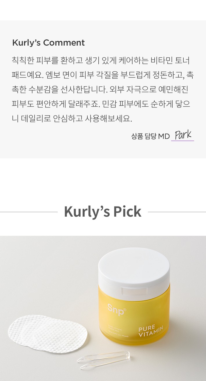 ・ 특징:칙칙한 피부를 환하고 생기 있게 케어하는 토너 패드입니다.