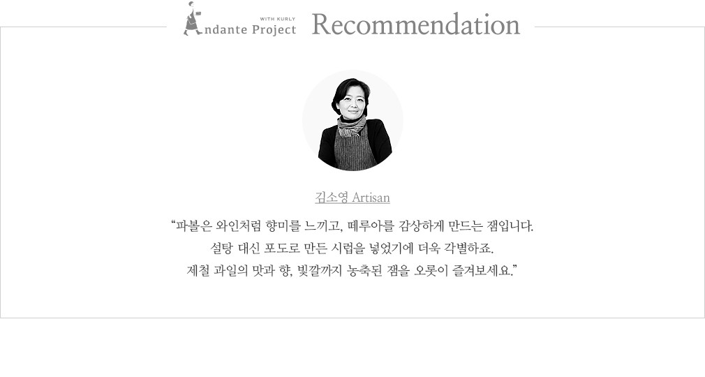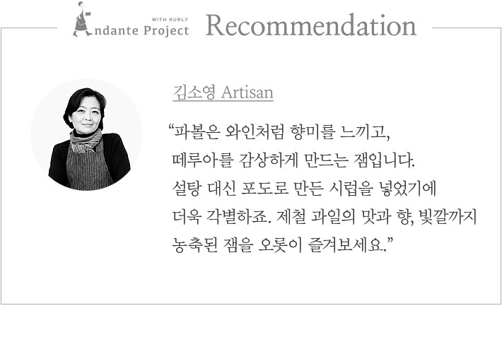 잘 영근 과일에서 나는 향,산지의 떼루아가 담긴 신선한 맛,그리고 아티장의 열정. 독창적인 잼을 생산하는 프랑스 아티장 ‘파볼’은 이 모든 것을 한 병에 담았습니다. 그들은 어떻게 하면 과일 본연의 맛과 향을 최대한 끌어낼 수 있을지 고민했어요. 그 결과,잼의 원료가 되는 제철 과일을 꼼꼼하게 고르고,포도즙을 저온에서 농축해 만든 시럽을 설탕 대신 사용했답니다. 지금 소개하는 라즈베리 잼은 은은한 단맛과 산미,향긋하게 풍겨오는 베리 향을 입안 가득 즐길 수 있어요. 담백한 스콘에 한 스푼씩 간단히 곁들여 보세요.