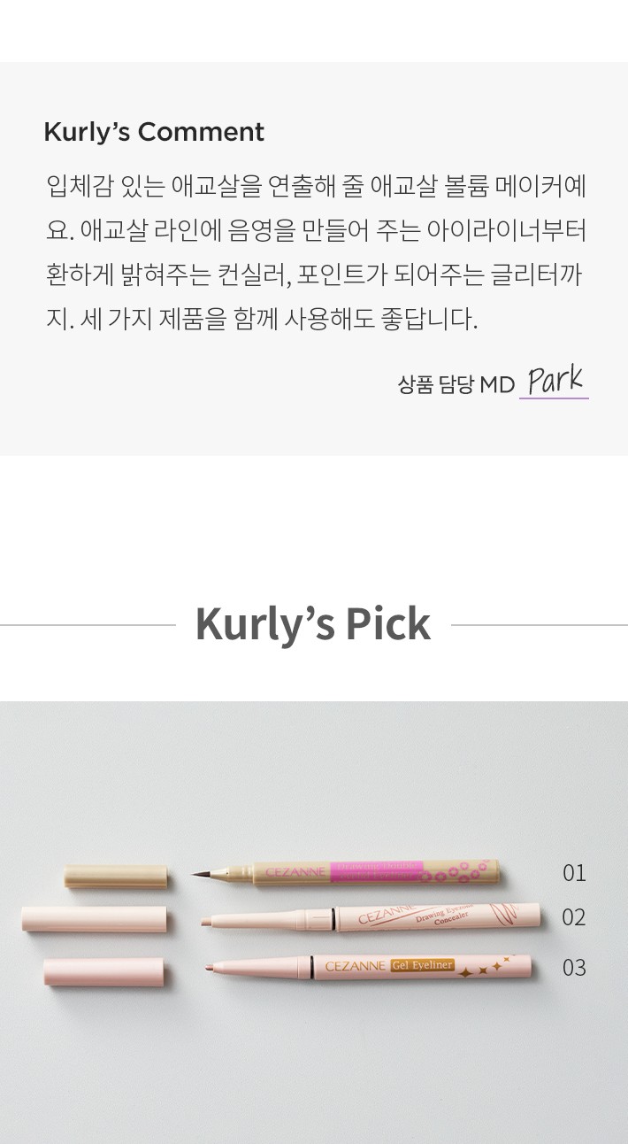 ・ 특징:뭉침 없이 가볍게 커버해주는 컨실러예요. 애교살을 밝게 밝혀 주어 입체감 있는 눈매를 연출합니다.