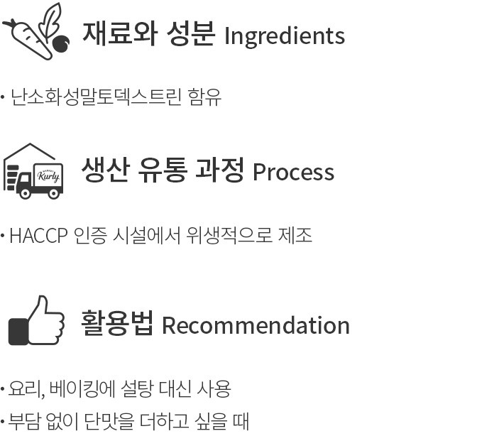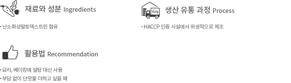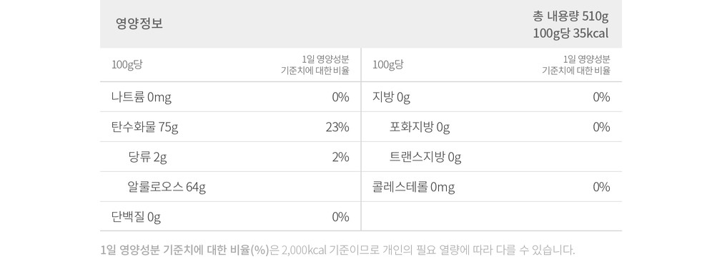?특징:칼로리와 당류 부담 없이 활용하기 좋은 대체 감미료입니다.