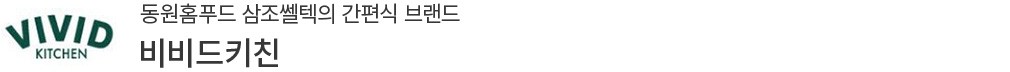 비비드키친은 더 쉽고 맛있는 요리를 위해 동원홈푸드 삼조쎌텍이 선보이는 소스&간편식(HMR) 전문 브랜드입니다. 동원홈푸드 삼조쎌텍은 지난 30여 년간 소스 전문가와 전문 셰프들의 레시피를 바탕으로 수많은 글로벌 식품회사,프랜차이즈,외식 업체에 제품을 공급해 왔는데요. 오랜 경험과 노하우를 바탕으로 편리하면서도 맛있게 즐길 수 있는 메뉴들을 연구,개발하고 있답니다. HACCP,FSSC 22000 등의 인증을 통한 안정성 검증은 물론,자동화 시스템을 도입한 스마트 공장을 운영하며 믿을 수 있는 품질의 제품을 생산하죠. 비비드키친이 제안하는 다채로운 레시피와 함께 그 이름처럼 생기 넘치는 키친을 경험해 보세요.