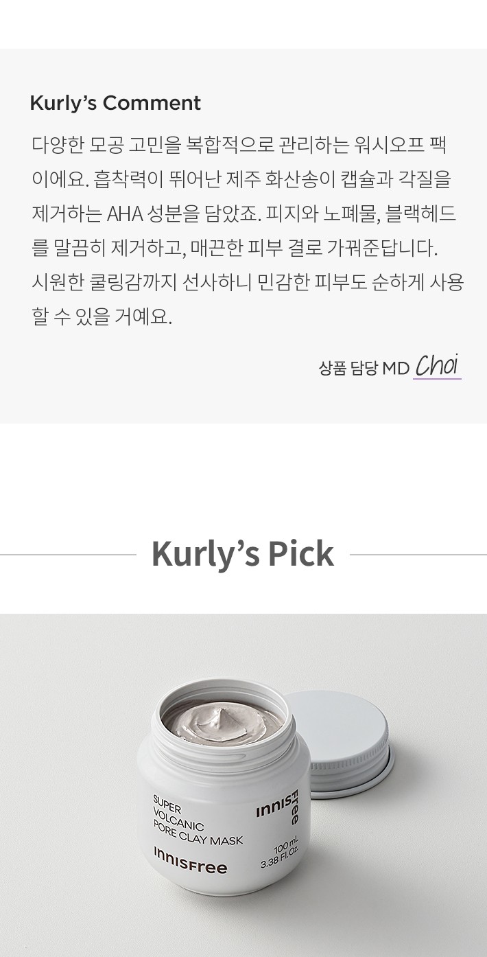 추천 루틴・ 마스크 사용 후 이니스프리의 화산송이 바하 모공 클렌징폼으로 마무리해 보세요. 모공 속 노폐물까지 집중 케어할 수 있습니다.