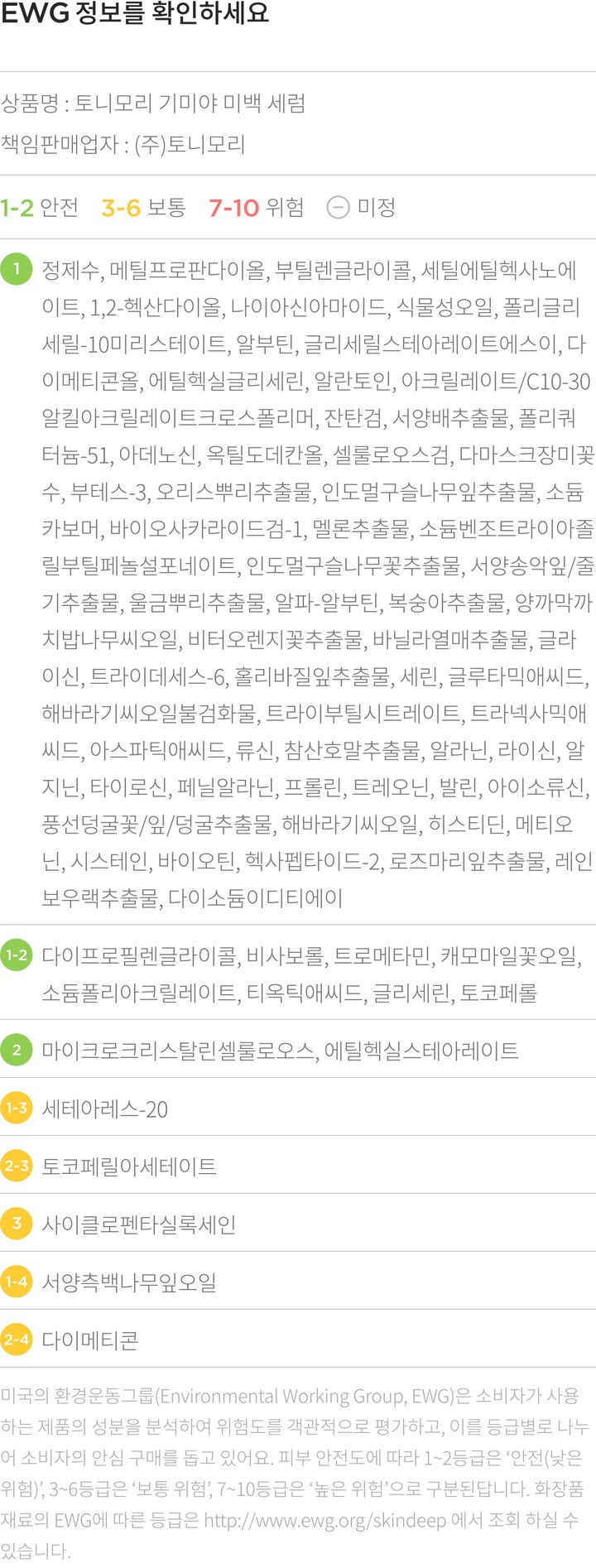 관련된 추가 정보와 세부 사항은 캘리포니아 주 공식 웹사이트(www.P65Warnings.ca.gov/food)에서 확인 가능합니다.