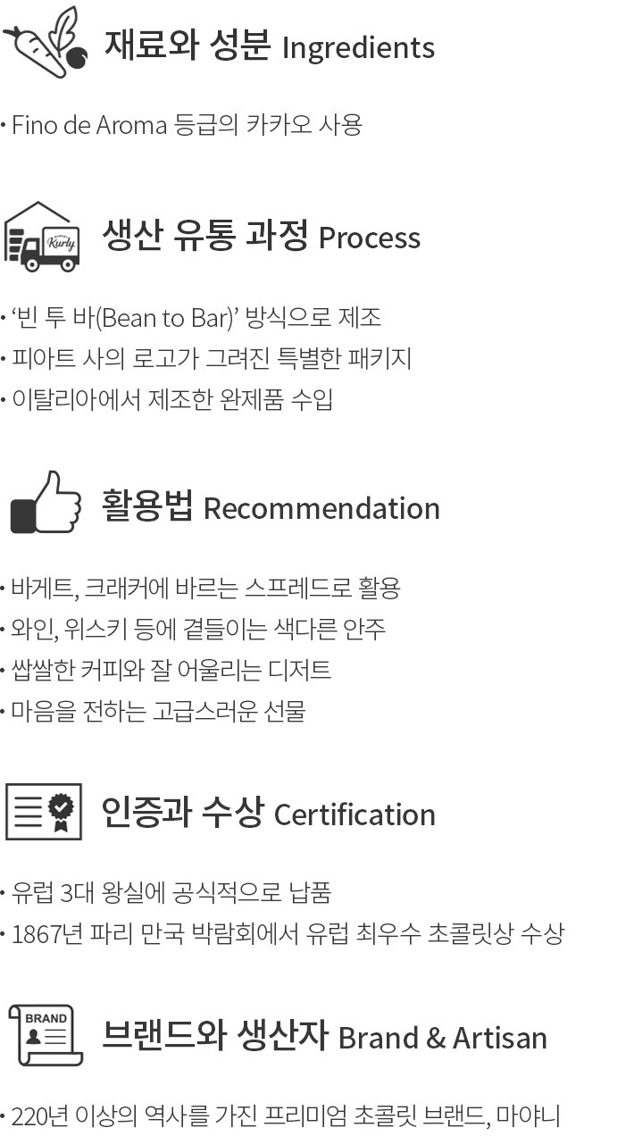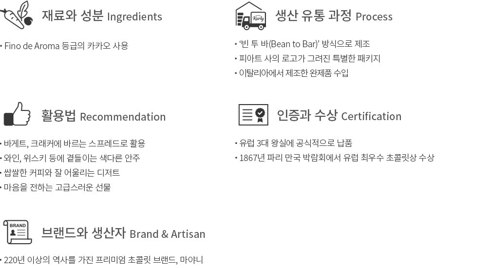 ・특징:카카오와 헤이즐넛 페이스트의 함량을 높여 진한 풍미가 돋보입니다.