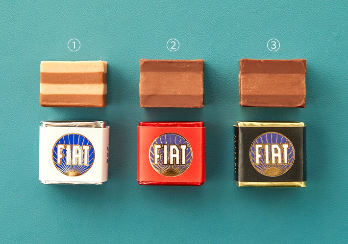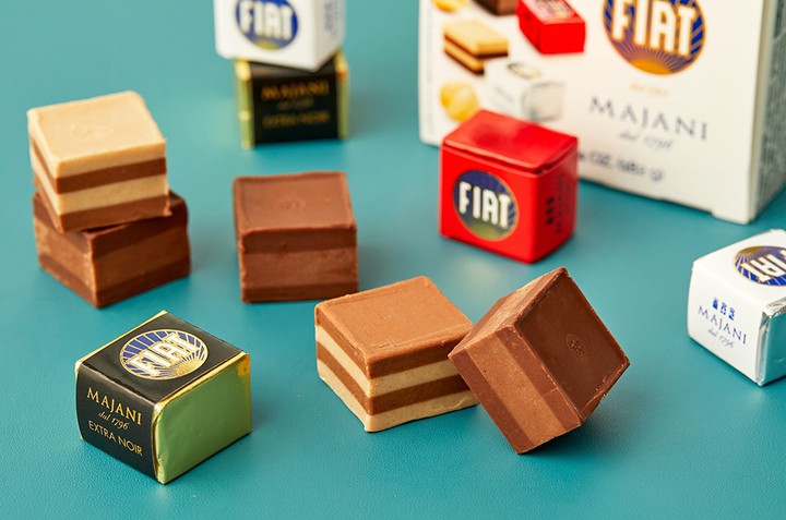 마야니만의 독보적인 4겹 초콜릿 1911년,이탈리아의 자동차 회사인 ‘피아트(FIAT)’는 최초의 4인승 승용차를 만든 것을 기념하며,이탈리아 전역의 초콜릿 브랜드를 대상으로 콘테스트를 개최하였는데요. 그 중 4겹 초콜릿을 개발한 마야니가 우승하였고,‘크레미노 피아트’라는 이름으로 특허를 취득했답니다. 이후 크레미노 피아트 초콜릿은 전 세계의 미식가들에게 사랑받으며 마야니의 시그니처 초콜릿으로 거듭났어요.