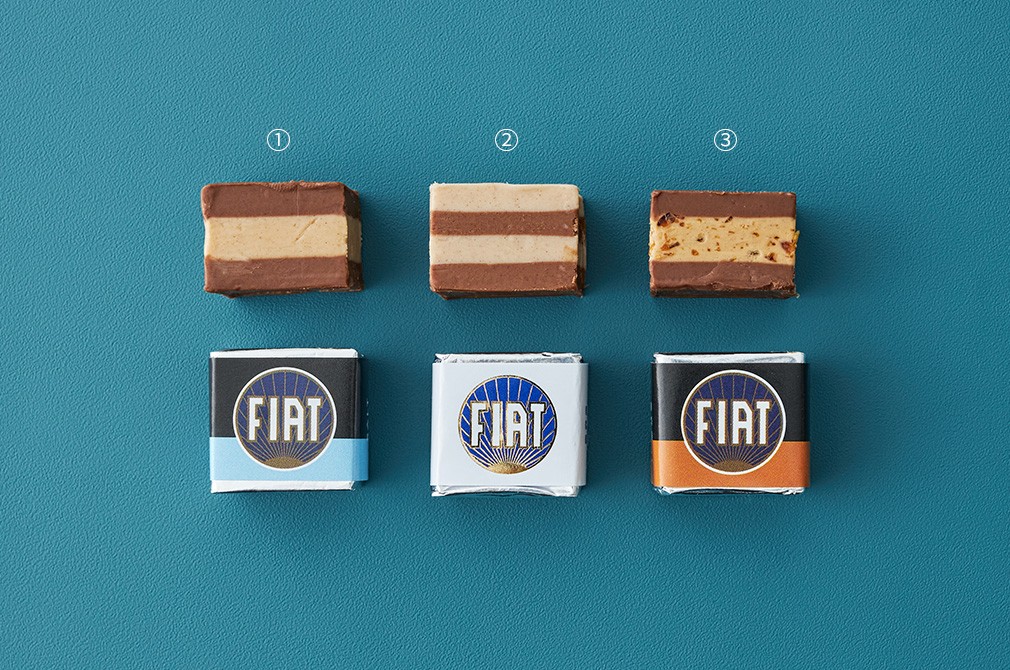 마야니만의 독보적인 4겹 초콜릿 1911년,이탈리아의 자동차 회사인 ‘피아트(FIAT)’는 최초의 4인승 승용차를 만든 것을 기념하며,이탈리아 전역의 초콜릿 브랜드를 대상으로 콘테스트를 개최하였는데요. 그 중 4겹 초콜릿을 개발한 마야니가 우승하였고,‘크레미노 피아트’라는 이름으로 특허를 취득했답니다. 이후 크레미노 피아트 초콜릿은 전 세계의 미식가들에게 사랑받으며 마야니의 시그니처 초콜릿으로 거듭났어요.