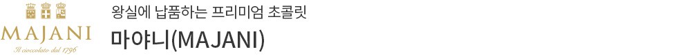 마야니는 1796년에 설립된 이탈리아 최초의 초콜릿 회사입니다. 유럽 3대 왕실에 납품하는 초콜릿답게 로고에는 왕실의 휘장이 그려져 있어요. ‘누구나 쓰는 재료는 마야니가 될 수 없다.’라는 신념 아래,세계 카카오 협회에서 인증한 Fino de Aroma 등급의 카카오만을 엄선하여 ‘빈 투 바(Bean to Bar)’ 방식으로 만든 초콜릿을 선보인답니다. 최소 30년 이상의 경력을 가진 장인들이 만드는 것은 물론이에요. 새로운 미식 경험을 원한다면 주저 없이 선택해 보세요.