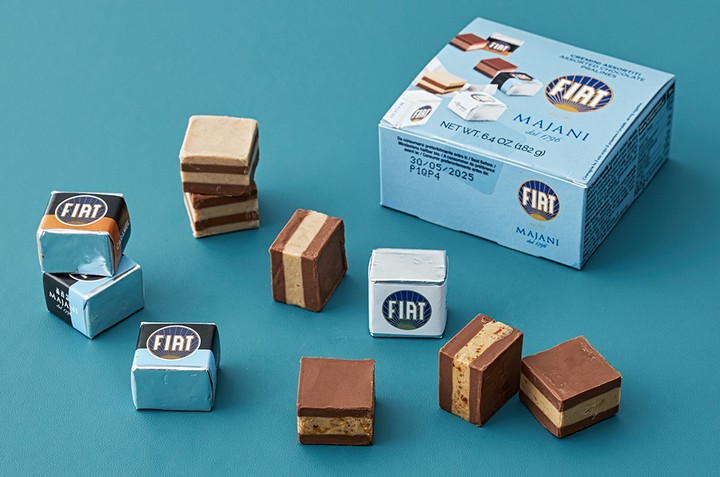 1796년에 설립된 이탈리아의 프리미엄 초콜릿 브랜드,마야니의 피아트 초콜릿을 만나 보세요. '피아트(FIAT)' 사의 4인승 승용차 개발을 기념하여 만든 초콜릿이랍니다. 초콜릿과 아몬드,헤이즐넛 페이스트를 여러 겹으로 층층이 쌓아 올려 진하게 농축된 풍미와 부드러운 텍스처를 자랑해요.