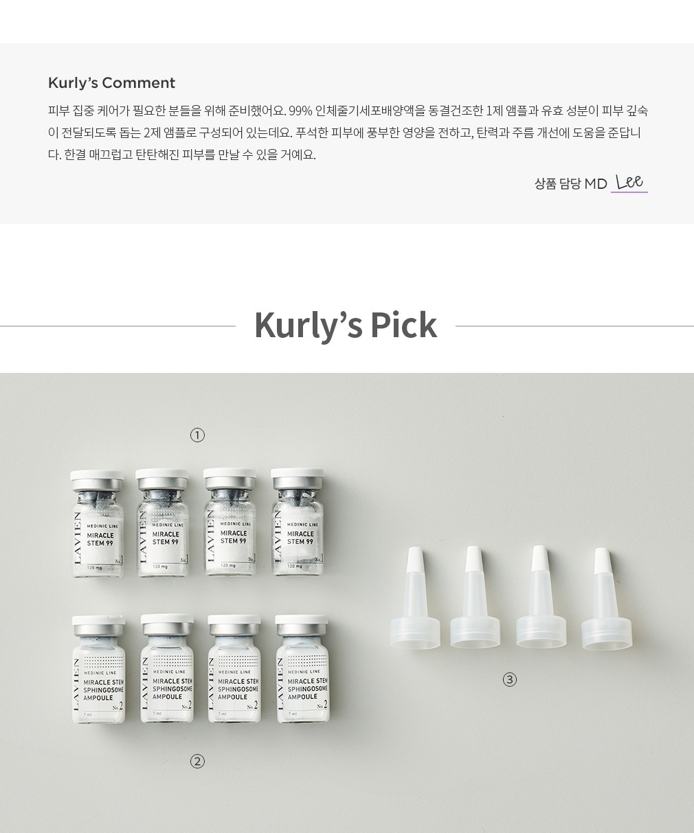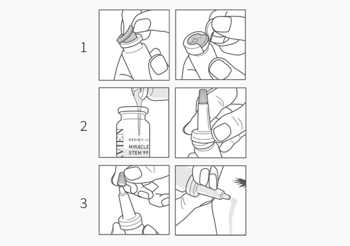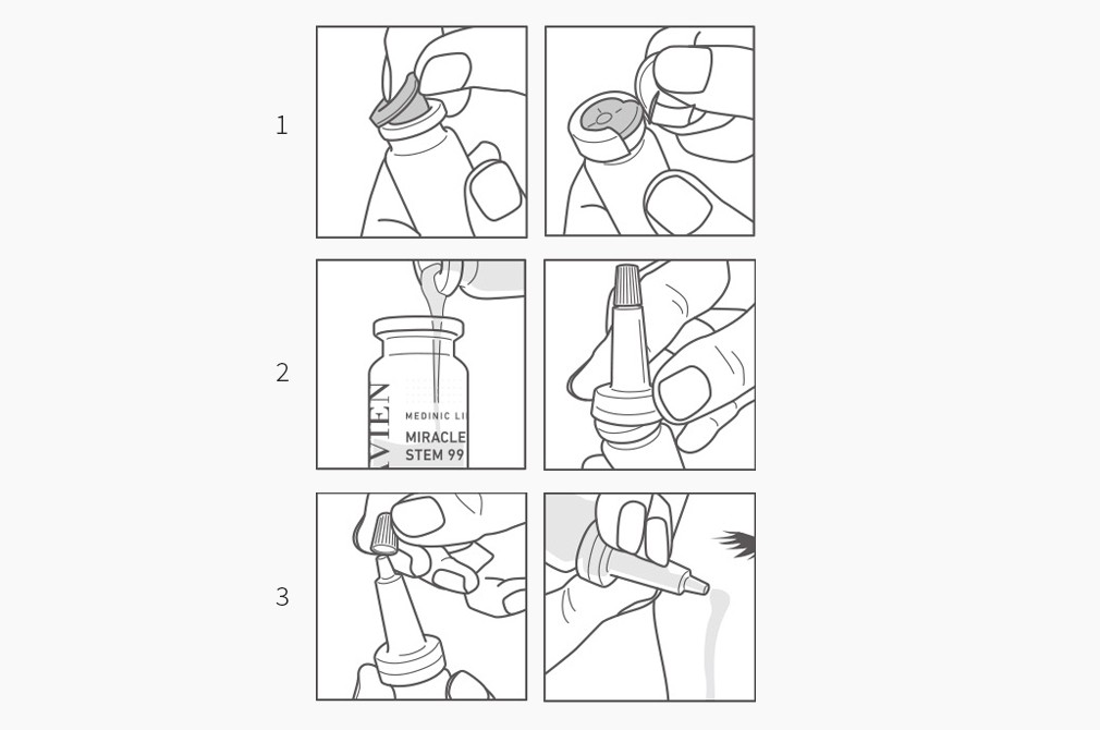 미라클 스템 99 프로그램・ 구성:①미라클 스템 99,②미라클 스템 스핑고좀 앰플,③고무캡