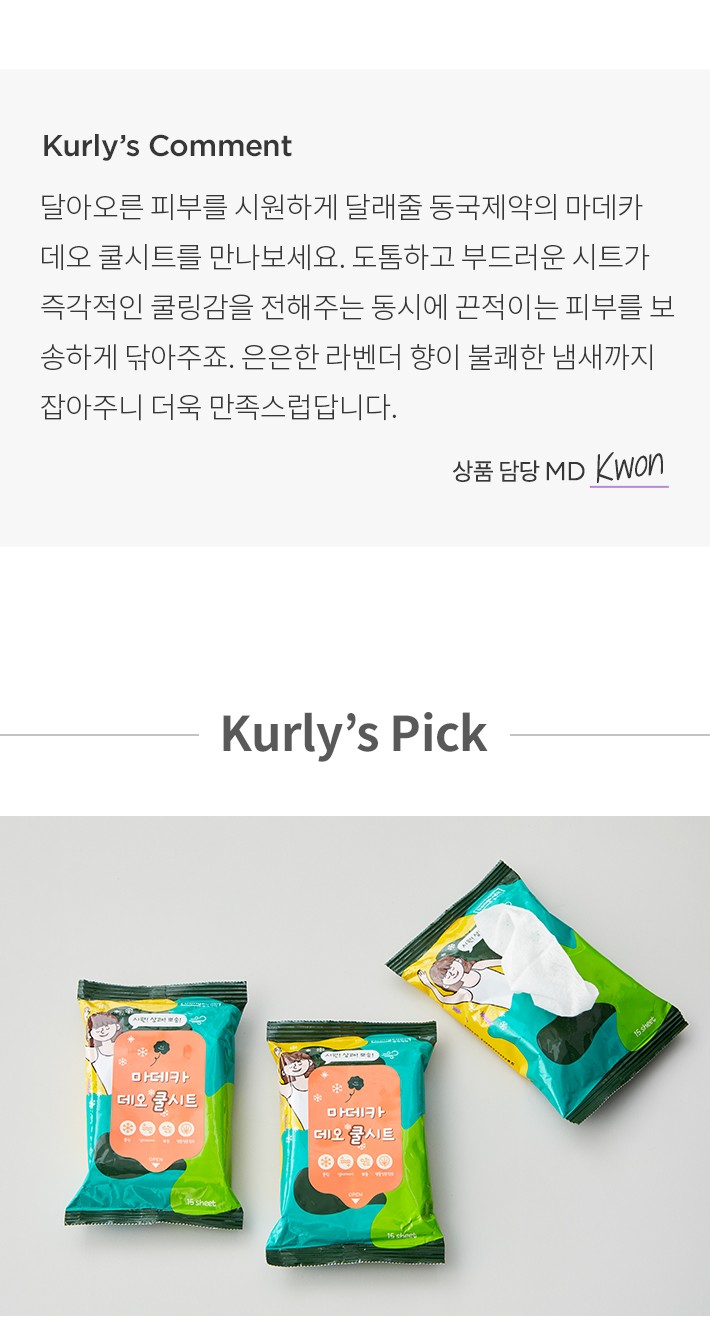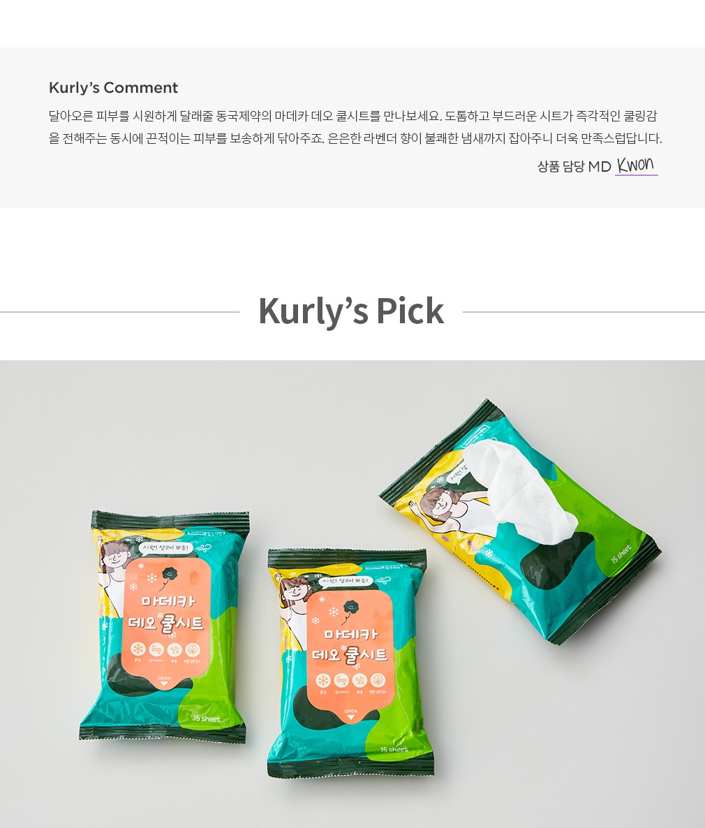 ? 특징:땀나고 열 오른 피부의 열을 내려주고,보송함을 선사하는 쿨링 시트예요.