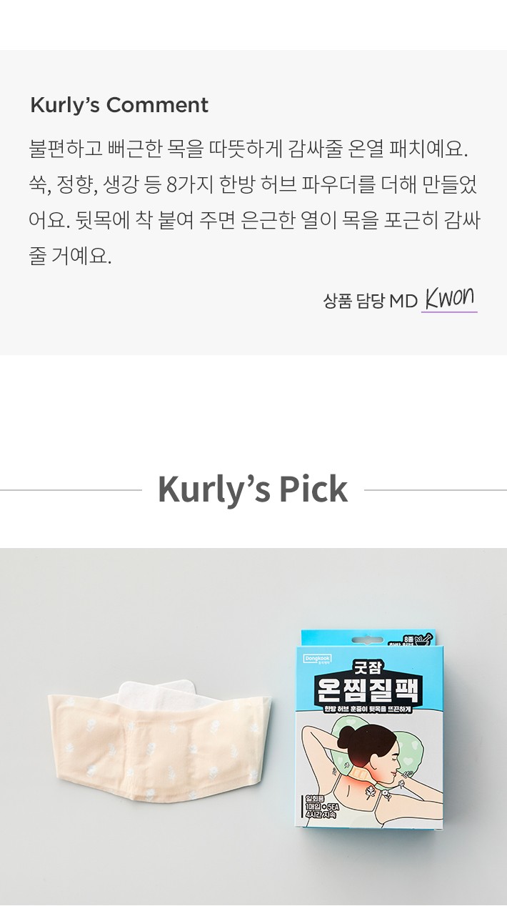 ・ 특징:8가지의 한방 허브파우더가 담긴 온열 팩입니다. 약 40℃의 온기가 최대 4시간까지 유지돼요.
