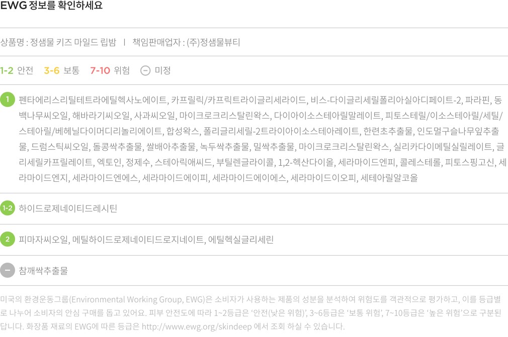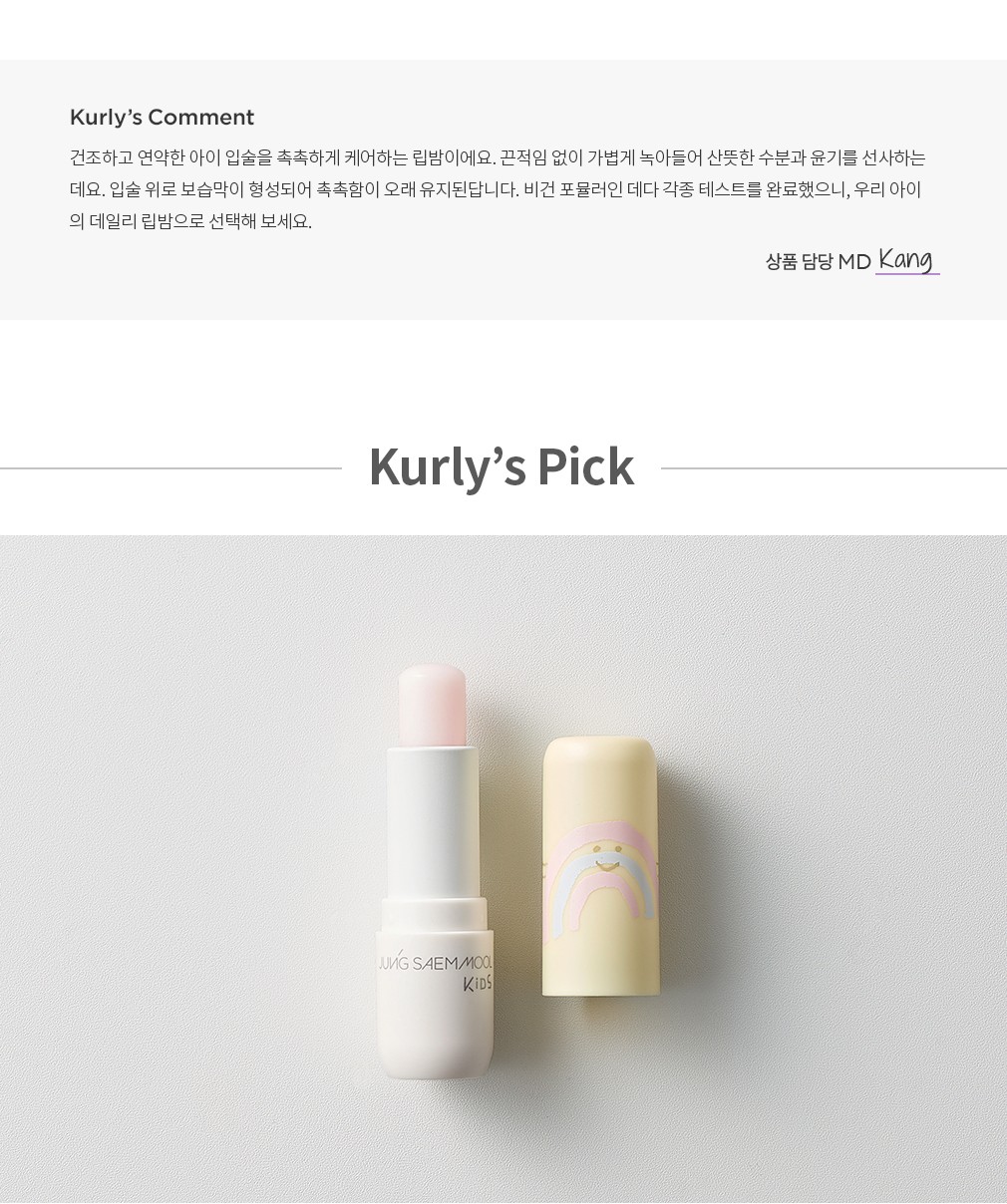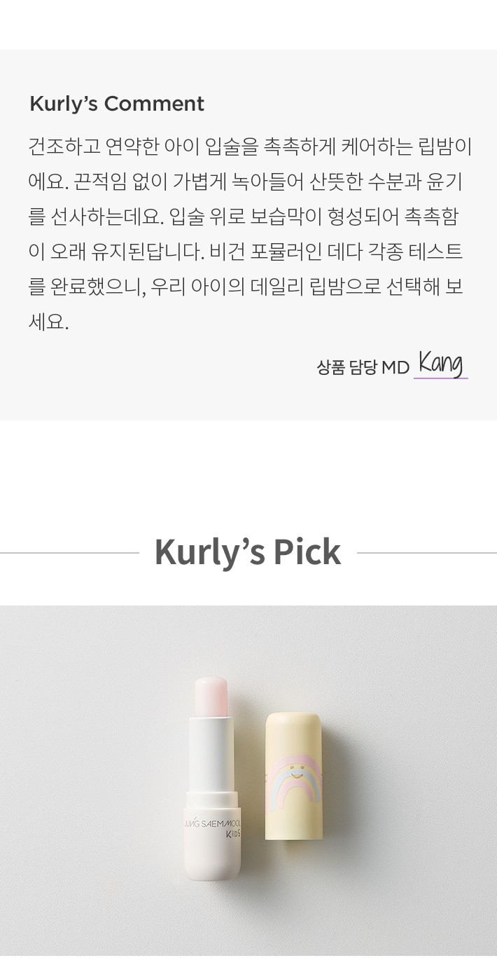 ・ 특징:탄탄한 보습력으로 쉽게 건조해지는 아이 입술에 사용하기 좋아요.