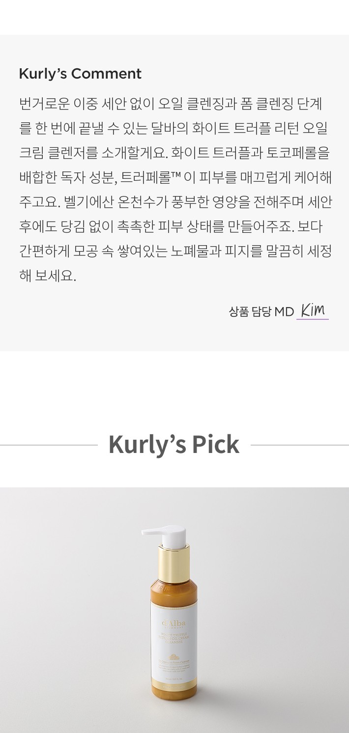 ・ 특징:오일과 크림 클렌저의 기능을 모두 담은 젤 세럼 제형의 클렌저입니다. 트러페롤™과 벨기에산 온천수 등의 보습 성분이 함유되어 있어요.