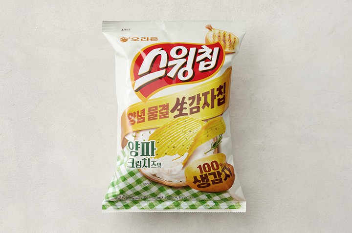 특유의 물결 모양과 짭조름한 맛으로 많은 사랑을 받아온 스윙칩을 색다른 맛으로 즐겨보세요. 지금 소개할 스윙칩은 양파크림치즈 시즈닝으로 양파의 은은한 단맛과 치즈의 고소한 매력을 더해 완성했어요. 출출한 순간 즐기는 간식으로 고민 없이 선택해 보세요.