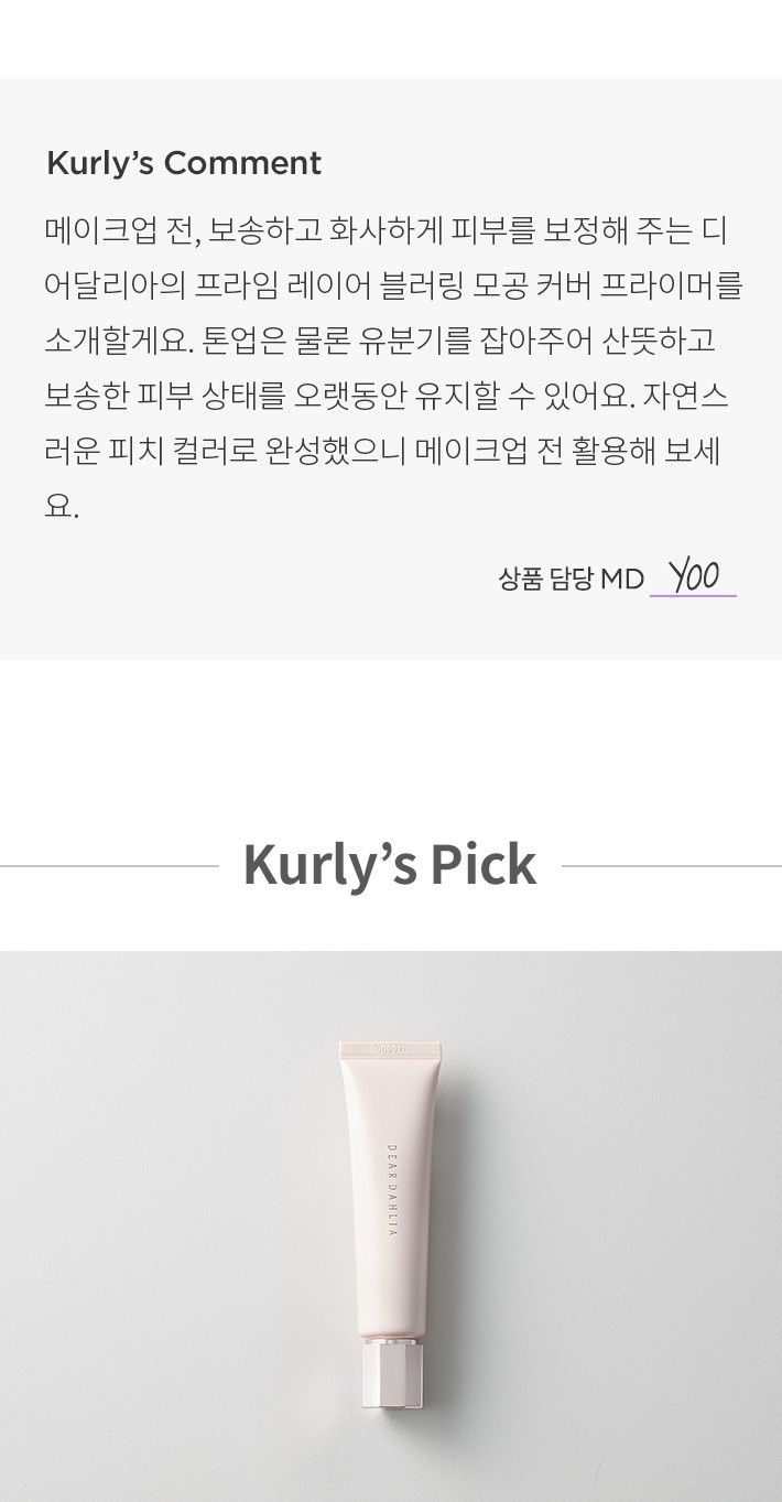 ・ 특징:피부를 자연스럽고 화사하게 톤업해주는 피치 컬러의 프라이머예요. 끈적임 없이 보송하게 마무리돼요.