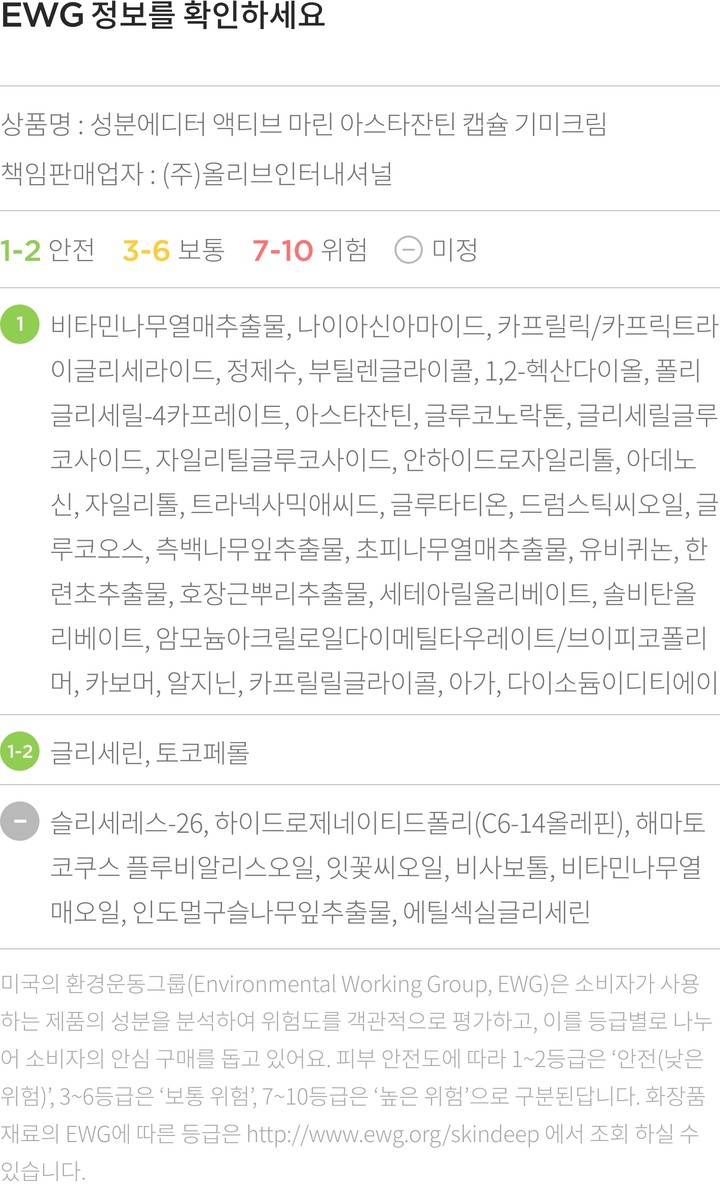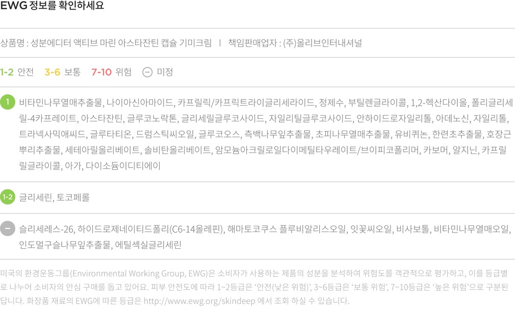 액티브 마린 아스타잔틴 캡슐 기미크림・ 중량:1개(150mL)