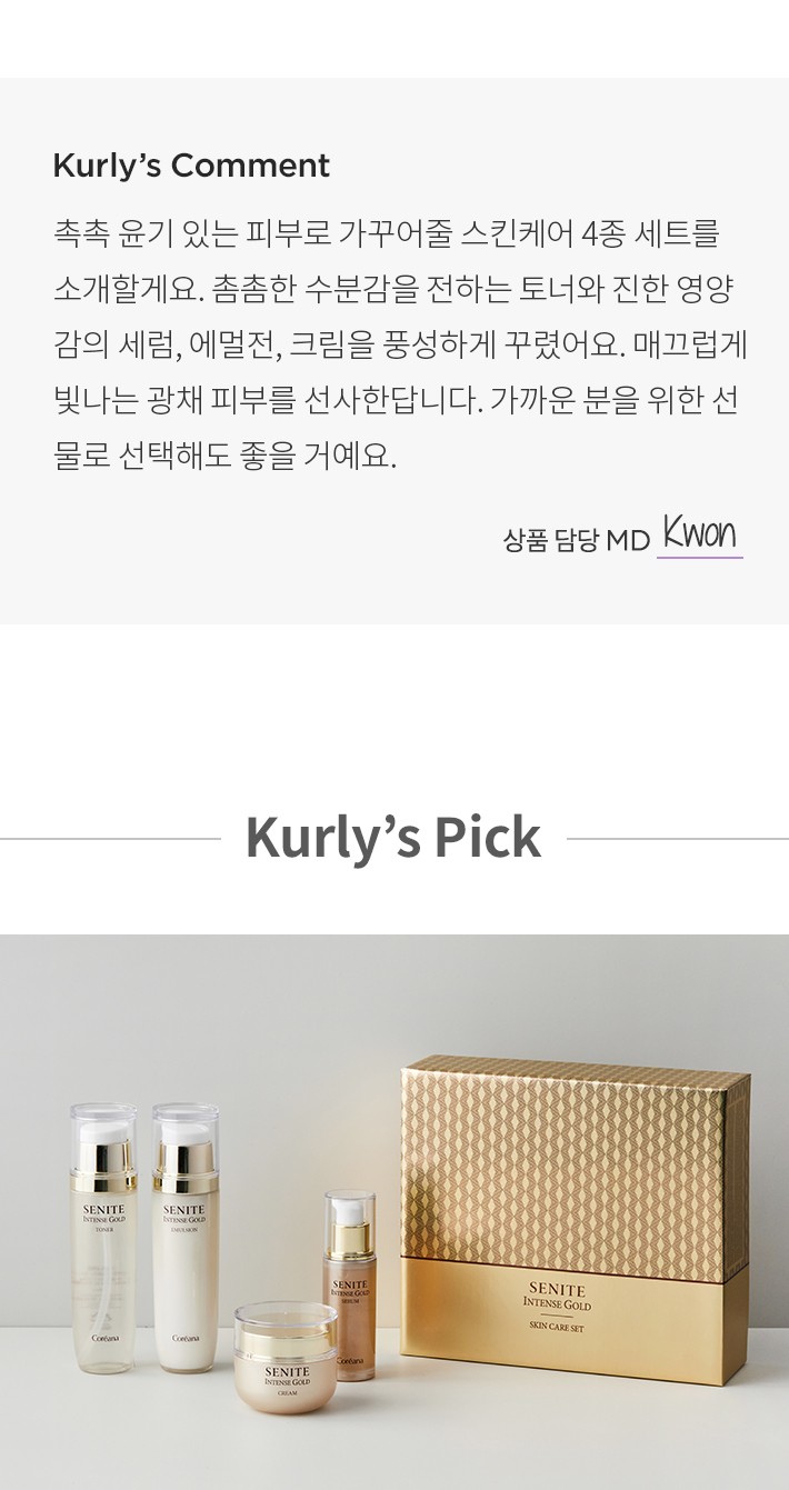 세니떼 인텐스 골드 스킨케어 4종 세트・ 구성:①세니떼 인텐스 골드 토너,②세니떼 인텐스 골드 세럼,③세니떼 인텐스 골드 에멀전,④세니떼 인텐스 골드 크림