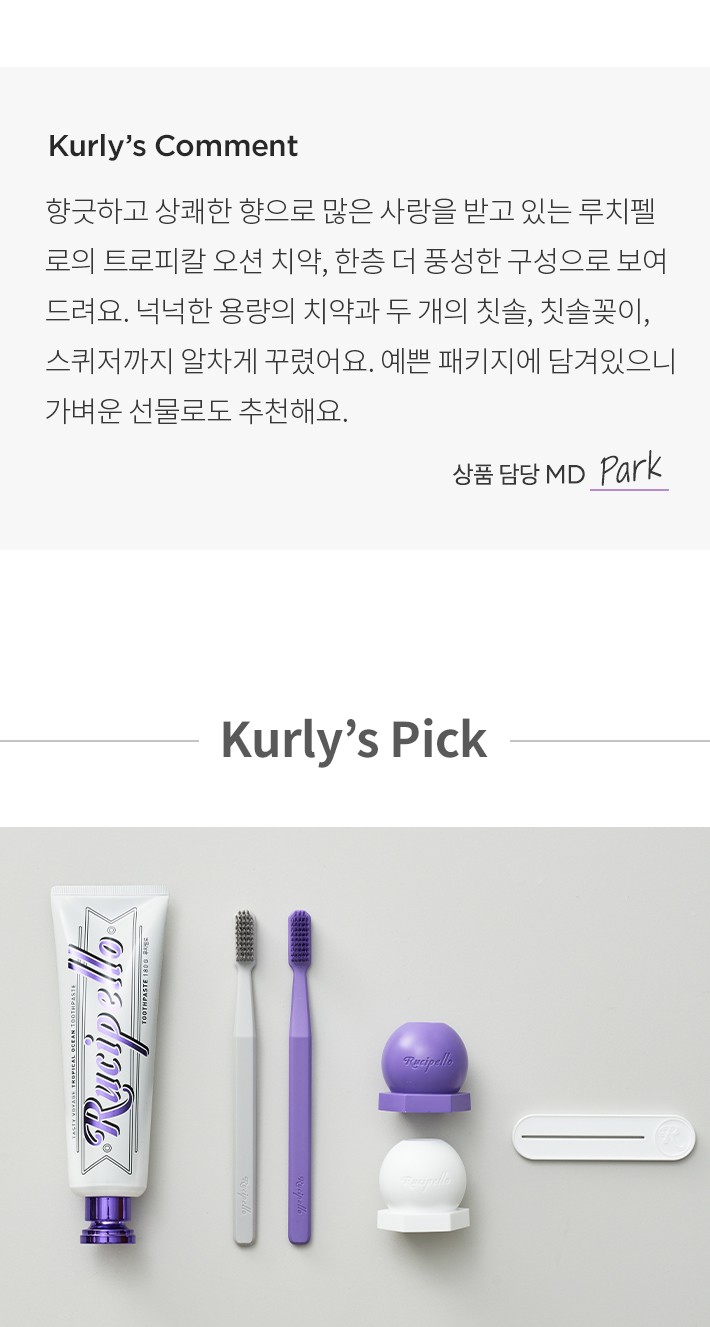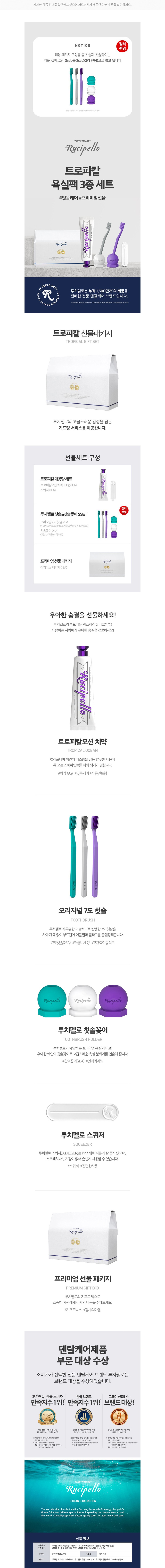 [루치펠로] 트로피칼오션 욕실팩 3종세트 (트로피칼오션치약 180g+칫솔 2ea+칫솔꽂이+스퀴저)