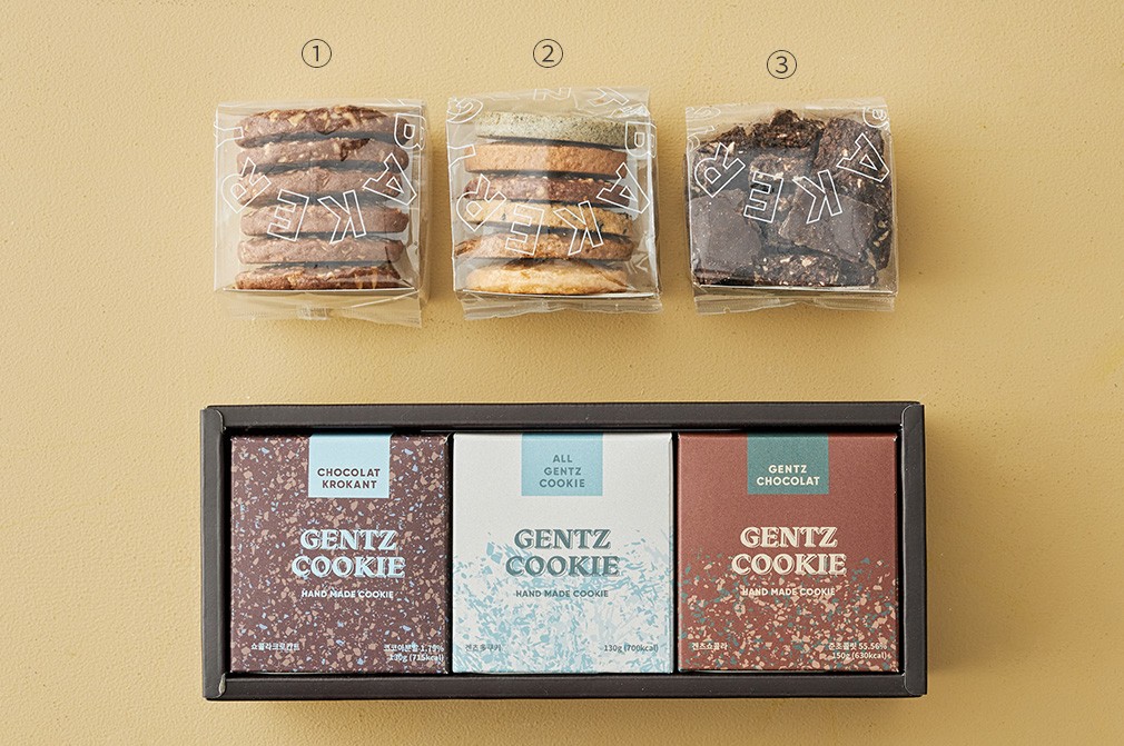 트렌디한 베이커리를 선보이는 부산의 명물,겐츠베이커리가 선보이는 쿠키 3종 세트를 소개할게요. 달콤한 쇼콜라 크로칸트부터 여러 종류의 쿠키를 함께 담은 겐츠 多 쿠키까지. 각양각색의 매력을 살려 완성한 쿠키들로 다양하게 구성했어요. 깔끔한 상자에 담아 보내 드리니,소중한 분에게 마음을 전하는 선물로 활용해 보세요.