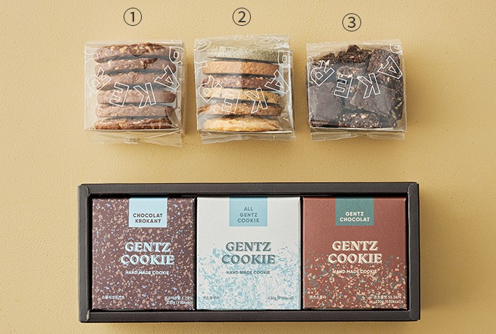 쿠키 3종 세트?구성:①쇼콜라 크로칸트,②겐츠 多 쿠키,③겐츠 쇼콜라