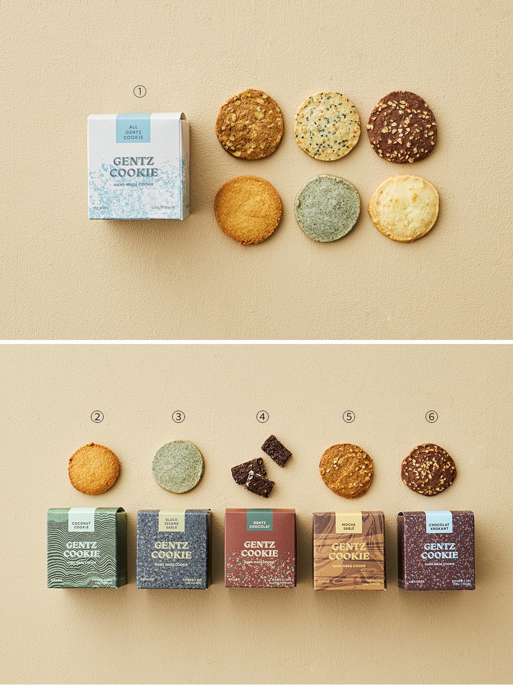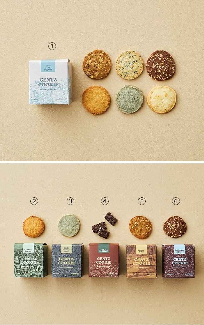 쿠키 6종 세트? 구성:①겐츠 多쿠키,②코코넛 쿠키,③흑임자 샤브레,④겐츠 쇼콜라,⑤모카 샤브레,⑥쇼콜라 크로칸트