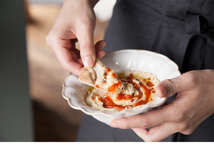 ?부드럽고 고소한 맛의 후무스가 조금 심심하다면,칠리 가루나 핫 소스를 더해 매콤하게 즐겨 보세요.