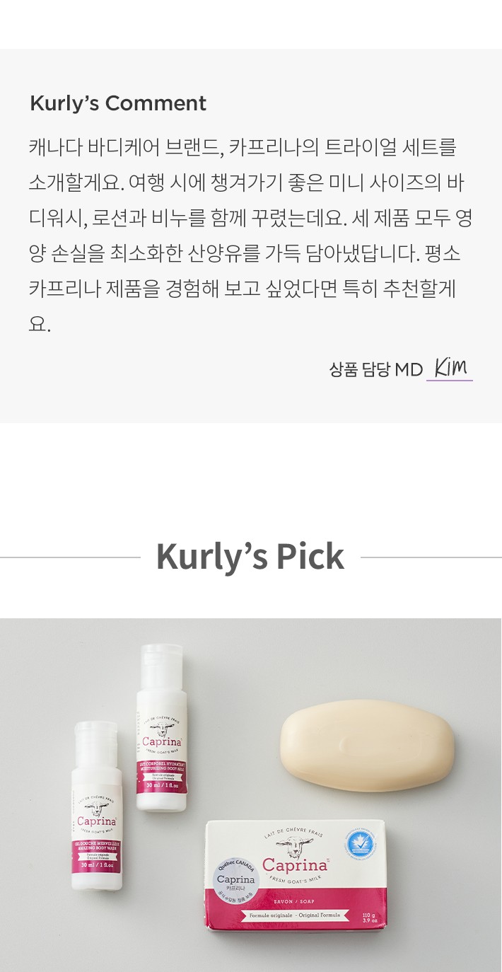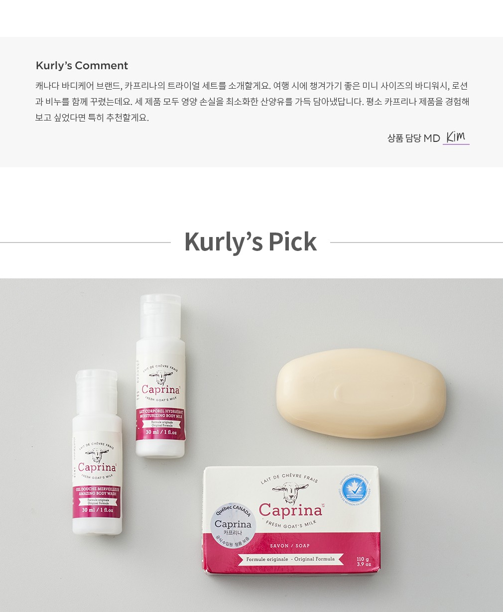 산양밀크 트라이얼 세트・ 구성:①산양밀크 바디로션 오리지널,②산양밀크 바디워시 오리지널,③산양밀크 비누