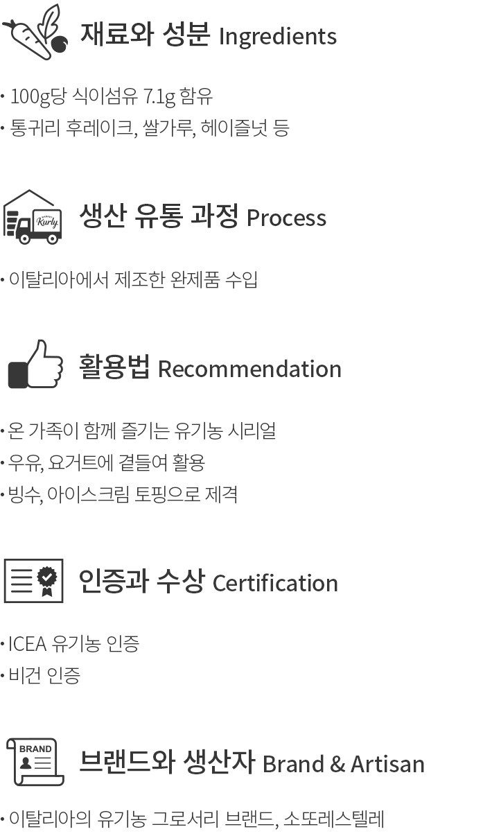 식이섬유를 풍부하게 함유한 비건 시리얼 [소또레스텔레] 유기농